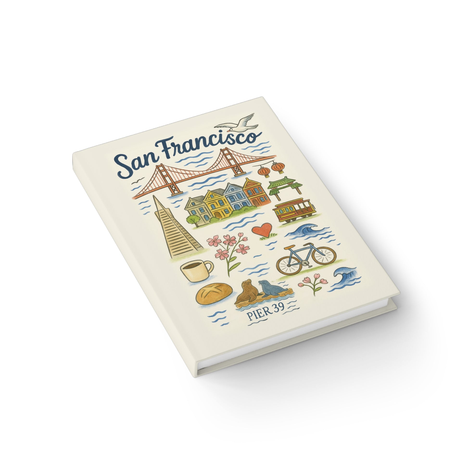 Experience San Francisco through art with this premium hardcover journal from the Fabled Veil City Editions. Its creamy textured cover and whimsical illustrations of San Francisco landmarks make it a collectible keepsake for travelers, artists, and dreamers. Perfect for sketching, doodling, taking notes, and drawing. Ideal for those who love to document their travels and memories. Great for gifting during holidays, birthdays, and special occasions.